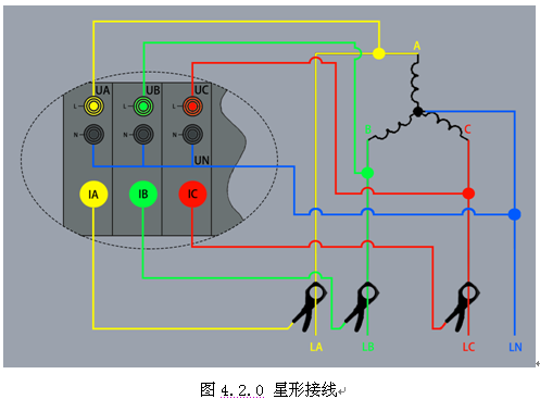 錄波儀的交流電壓通道,是每路獨(dú)立的,即通道內(nèi)部沒(méi)有連線。根據(jù)實(shí)際需求接成星形接線或三角形接線,如圖4.2所示: